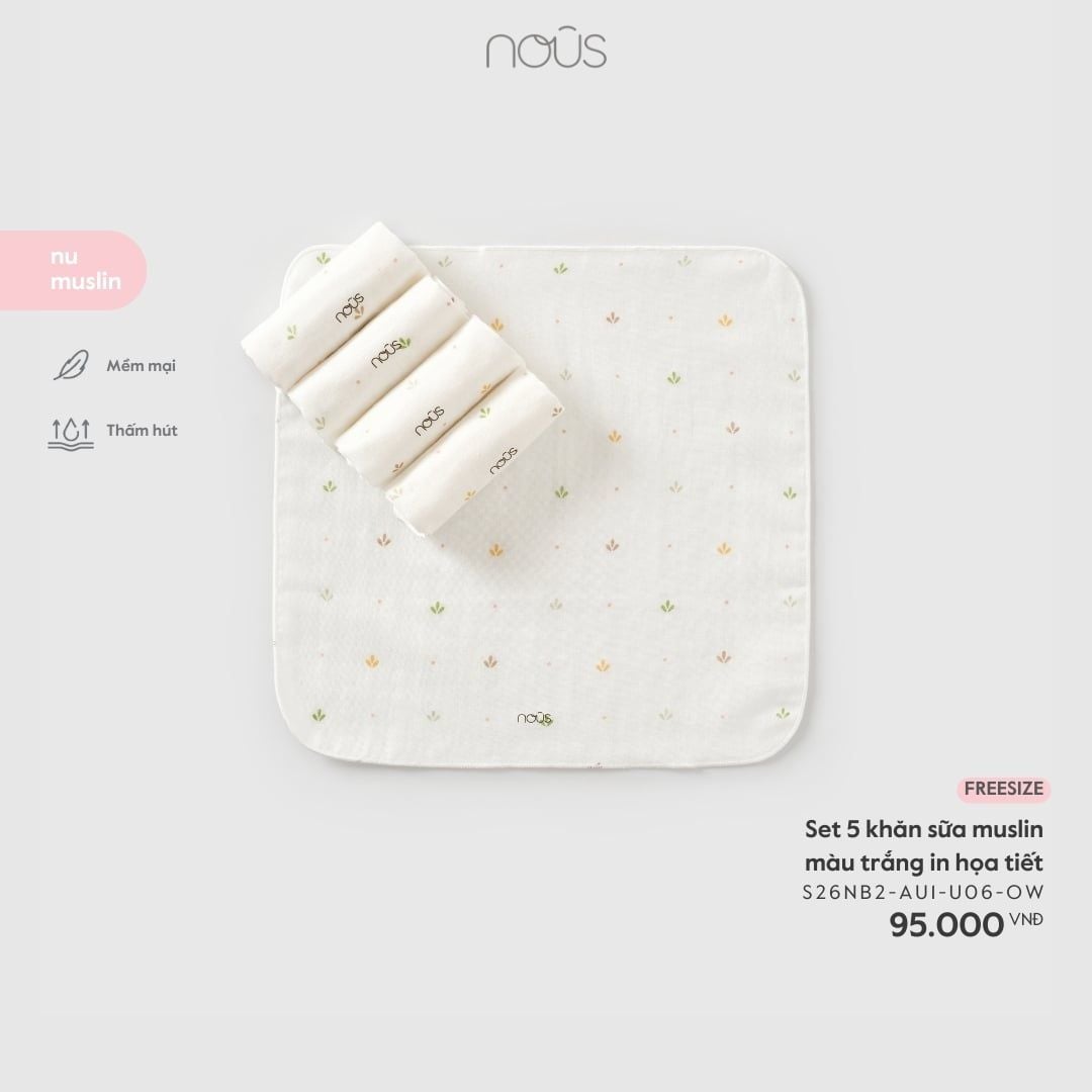 Set 5 Khăn Sữa Muslin Màu Trắng In Họa Tiết