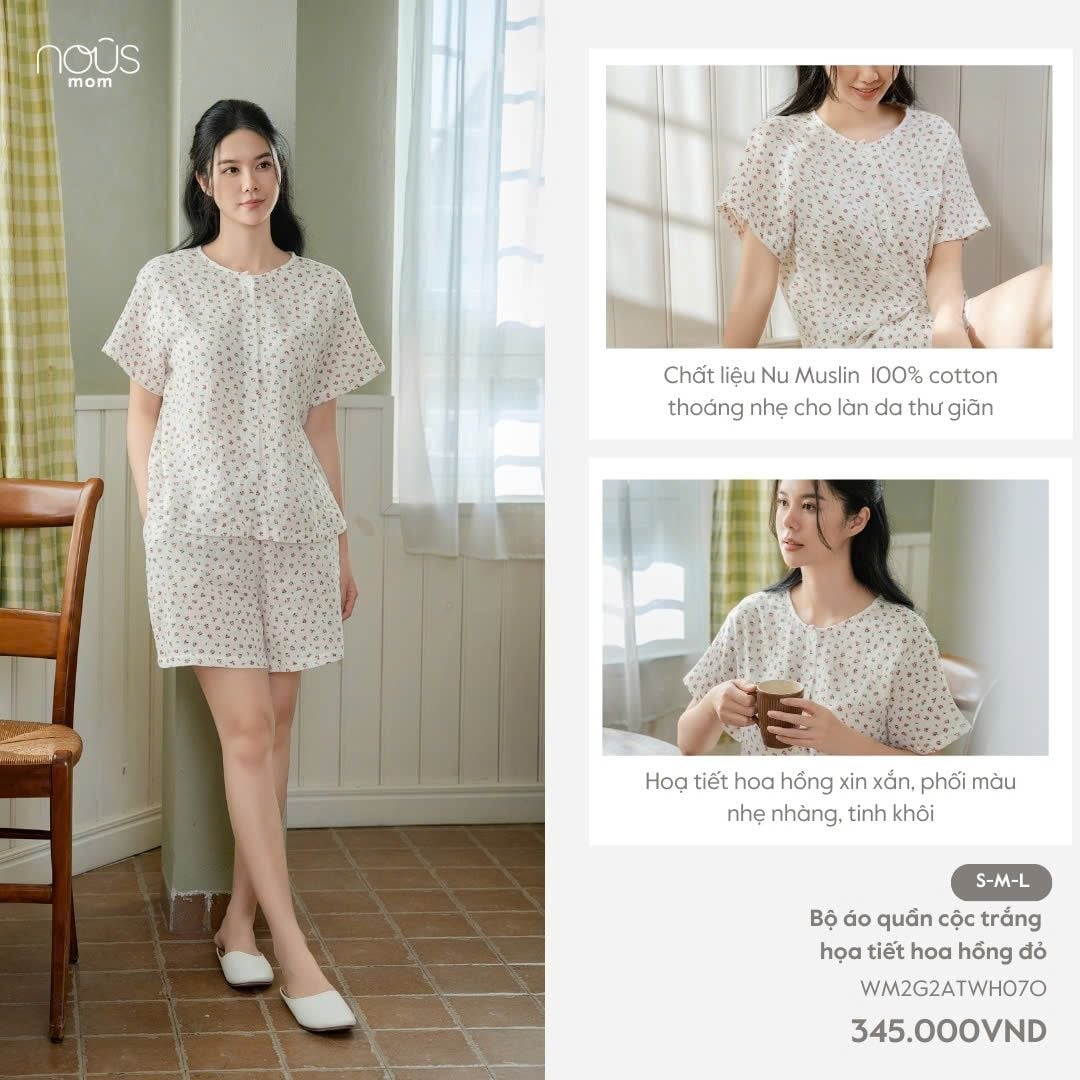 Tận hưởng những giây phút nghỉ ngơi trọn vẹn tại nhà với bộ đồ cộc tay họa tiết hoa hồng đỏ nằm trong dòng Nous Mom.