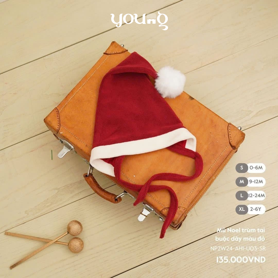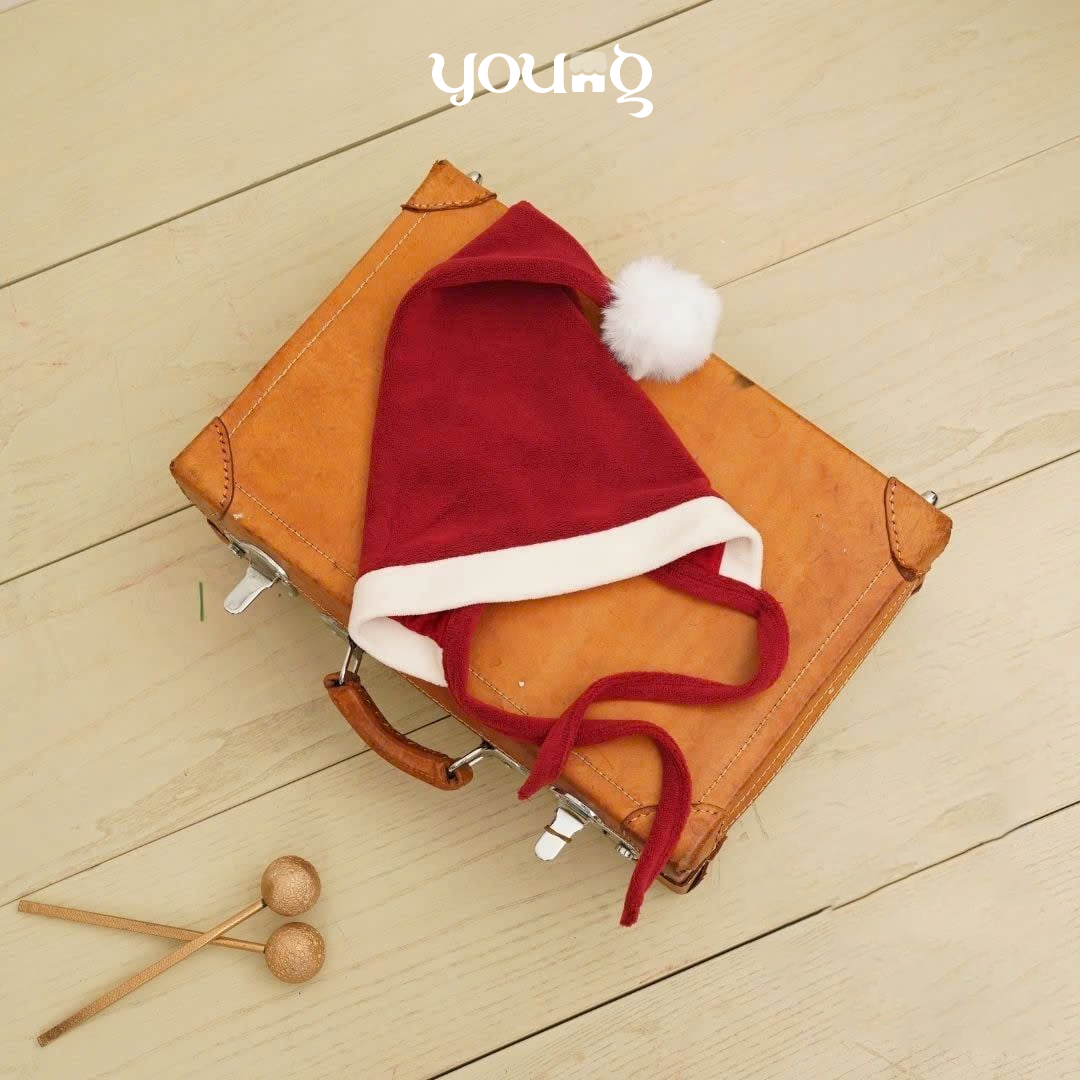 [YOUNG NU PETIT] Mũ Noel Trùm Tai Buộc Dây Màu Đỏ